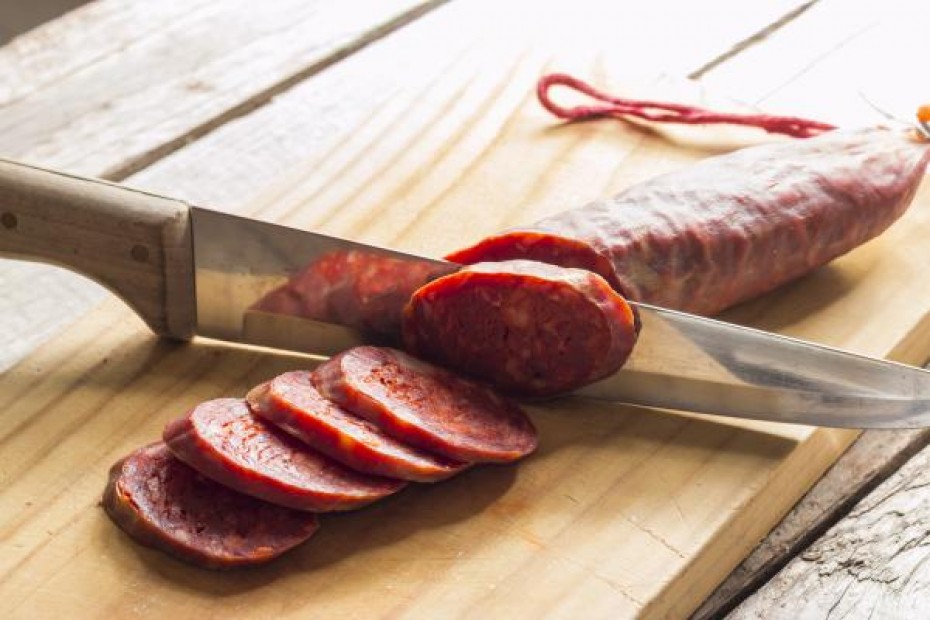 Sauce tomate, cantal (AOC), chorizo, olives