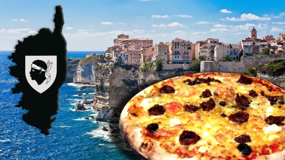 Sauce tomate, cantal (AOC), figatelli, poivrons frais, olives... Toute la Corse dans une Pizza !